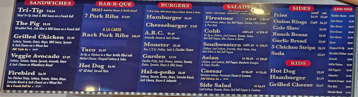 7 ribs, garlic bread, & choice of beans, or dinner salad.